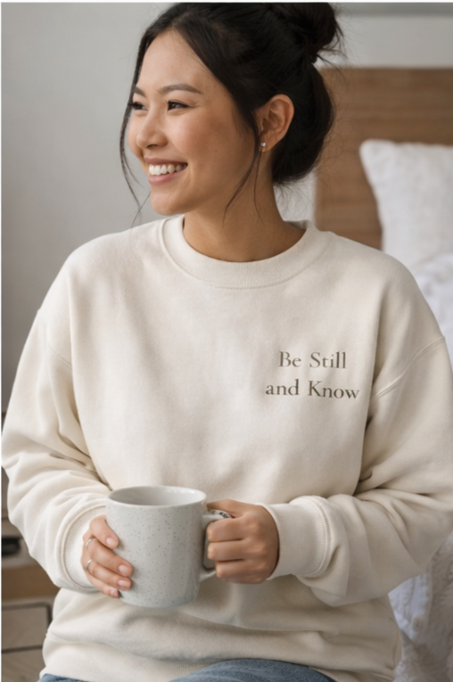 Wrap yourself in peace, comfort, and quiet faith with our Be Still and Know Christian sweatshirt. Designed on a premium Independent Trading Co crewneck in the soft, neutral Bone color, this minimalist scripture sweatshirt is perfect for everyday wear, church, Bible study, or cozy mornings with the Lord.